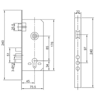 Stainless Steel Custom Rim Locks / Black Painting Door Lock Body With Cylinder Hole